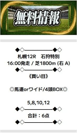 1レース目は、8月16日札幌12Rの無料予想です。