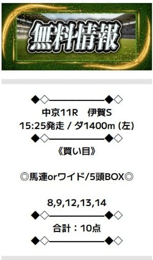 無料予想では思いがけない高配当を獲得しましたが、有料予想ではそれ以上の的中を期待したいところです。