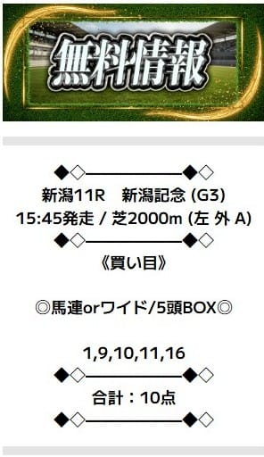 続いては、8月31日新潟11Rの無料予想です。